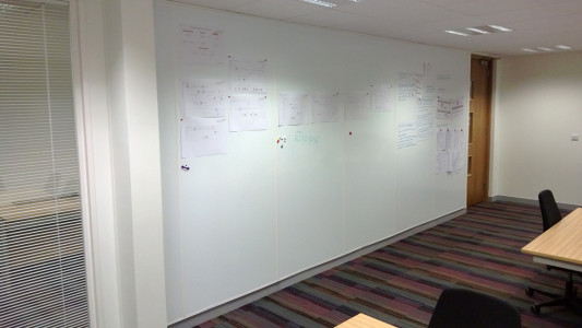 The whiteboard wall is a modern solution to provide an complete area of writable-erasable, magnetic whiteboard surface. This is extremely useful for areas where you want to create uninhibited notes and illustrations on the entire wall.