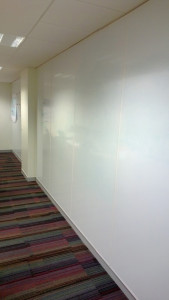 Whiteboard panels are butted up tightly next to each other and connected with a special plastic or aluminum profile system. They are manufactured from enameled steel and thus are magnetic as well as writable. They are ideal in situations where a surface is of poor quality, where the paint alternative cannot hide the imperfections on a surface. They are also very durable in day to day use. We recommend the use of whiteboard panels where you need a large magnetic writing surface that will see heavy use.